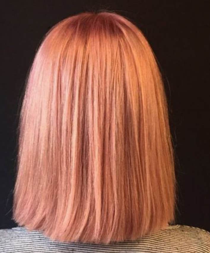 Perfect for a light blonde looking to go all rose gold. This look features an effortless root to end shade.