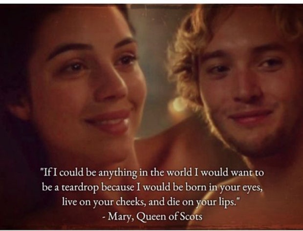 "If I could be anything in the world I would want to be a teardrop because I would be born in your eyes, live on your cheeks, and die on your lips." — Mary, Queen of Scots, Reign