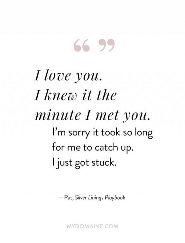 "I love you. I knew it theminute I met you. I'm sorry it took so long for me to catch up. I just got stuck." — Pat, Silver Linings Playbook