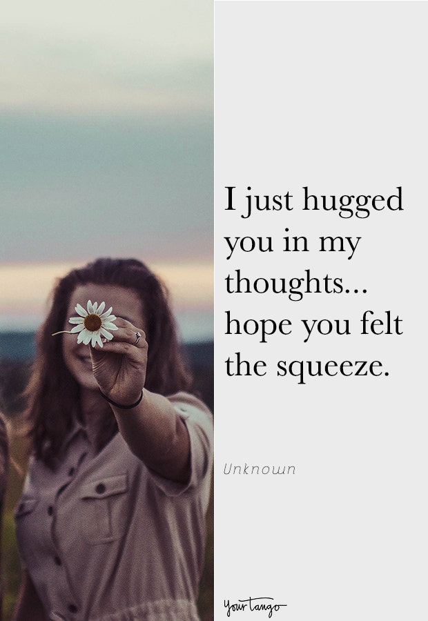 "I justhugged you in my thoughts... hope you felt the squeeze." — Unknown