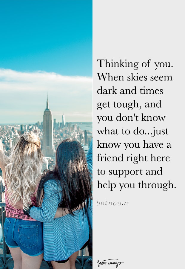 "Thinking of you. When skies seem dark and times get tough, and you don't know what to do...just know you have a friend right here to support and help you through." — Unknown