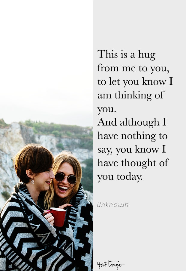 "This is a hug from me to you, to let you know I am thinking of you. And although I have nothing to say, you know I have thought of you today." — Unknown
