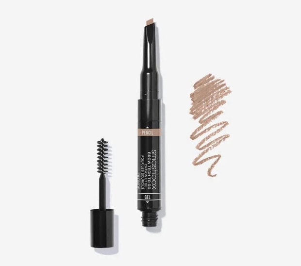 A double-ended applicator that has an angled long-wearing waterproof eyebrow pencil on one side and a soft-hold gel with a brow brush applicator on the other. You get the best of both worlds.