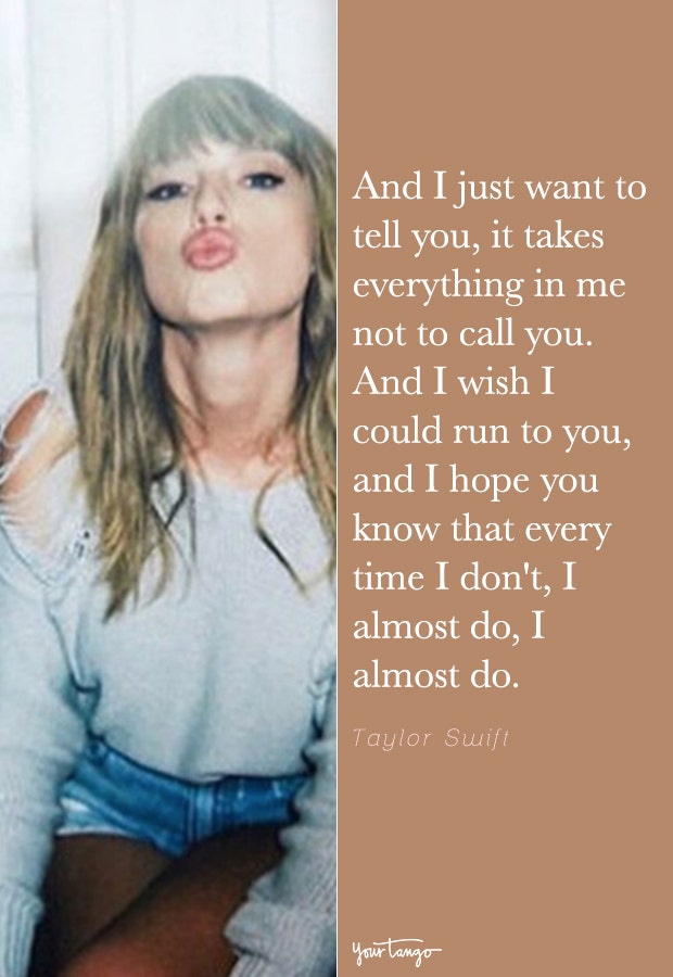 "And I just want to tell you, it takes everything in me not to call you. And I wish I could run to you, and I hope you know that every time I don't, I almost do, I almost do." — I Almost Do