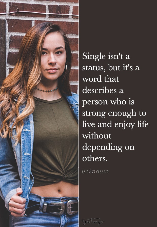 "Single isn't a status, but it's a word that describes a person who is strong enough to live and enjoy life without depending on others." — Unknown