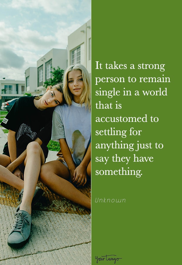 "It takes a strong person to remain single in a world that is accustomed to settling for anything just to say they have something." — Unknown