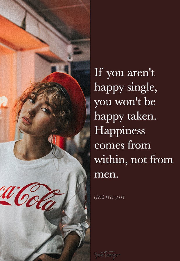 "If you aren't happy single, you won't be happy taken. Happiness comes from within, not from men." — Unknown
