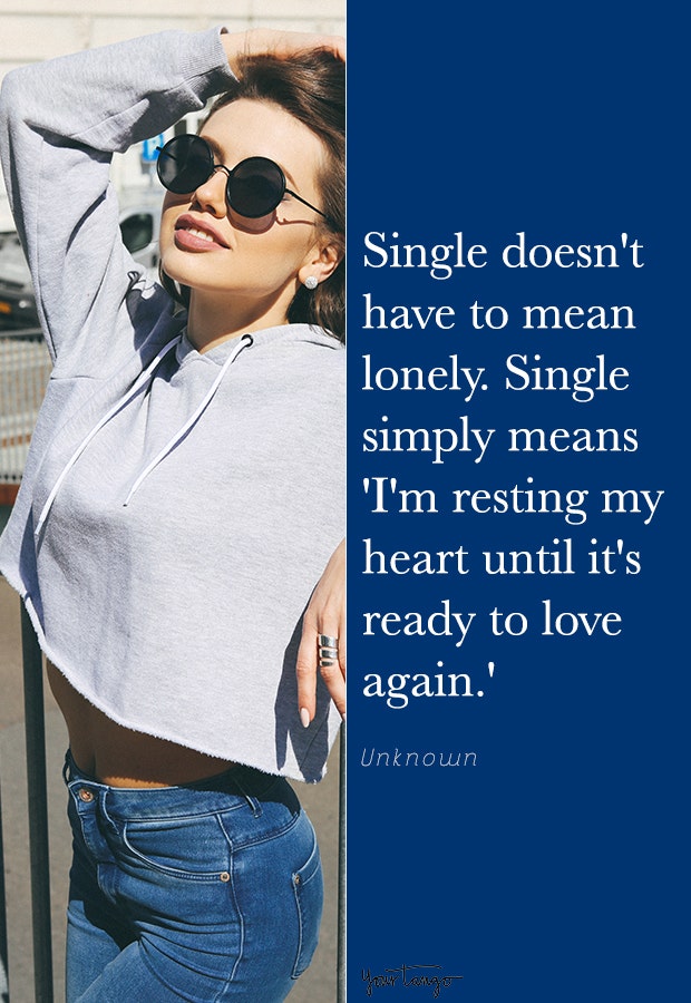 "Single doesn't have to mean lonely. Single simply means 'I'm resting my heart until it's ready to love again.'" — Unknown