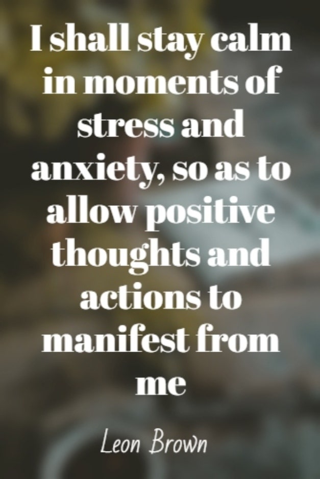 "I shall stay calm in moments of stress and anxiety, so as to allow positive thoughts and actions to manifest from me." — Leon Brown