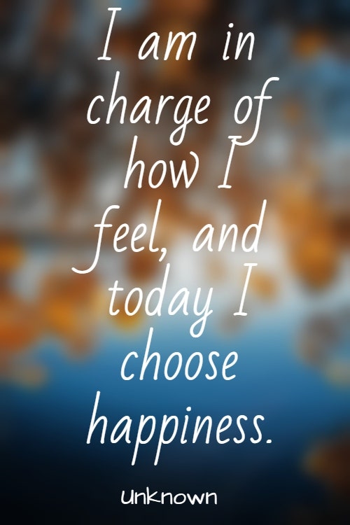 "I am in charge of how I feel, and today I choose happiness." — Unknown