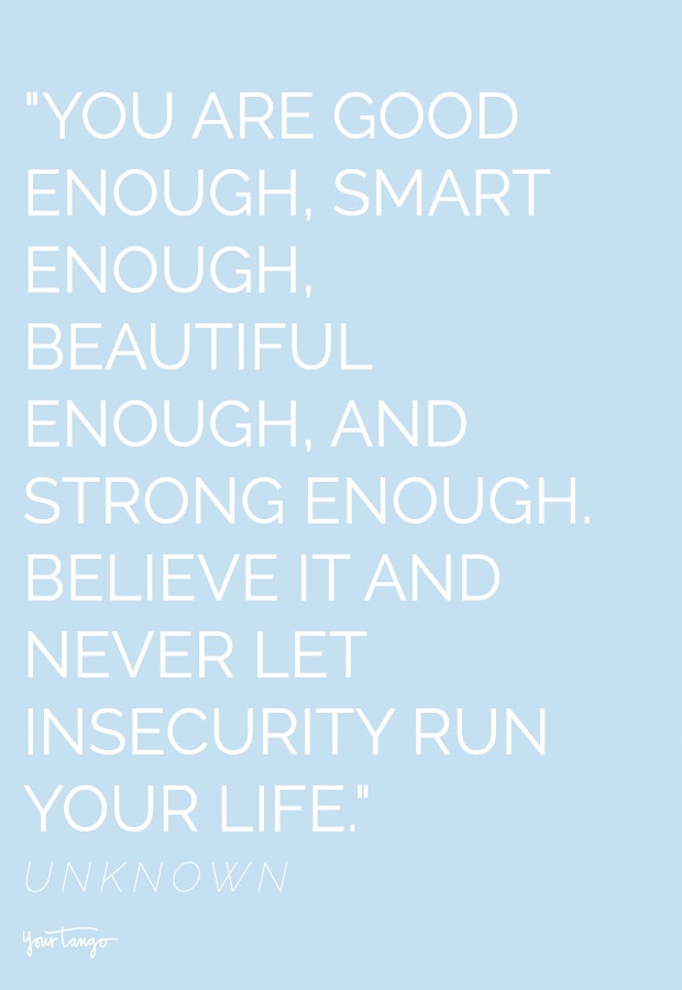 "You are good enough, smart enough, beautiful enough, and strong enough. Believe it and never let insecurity run your life." — Unknown