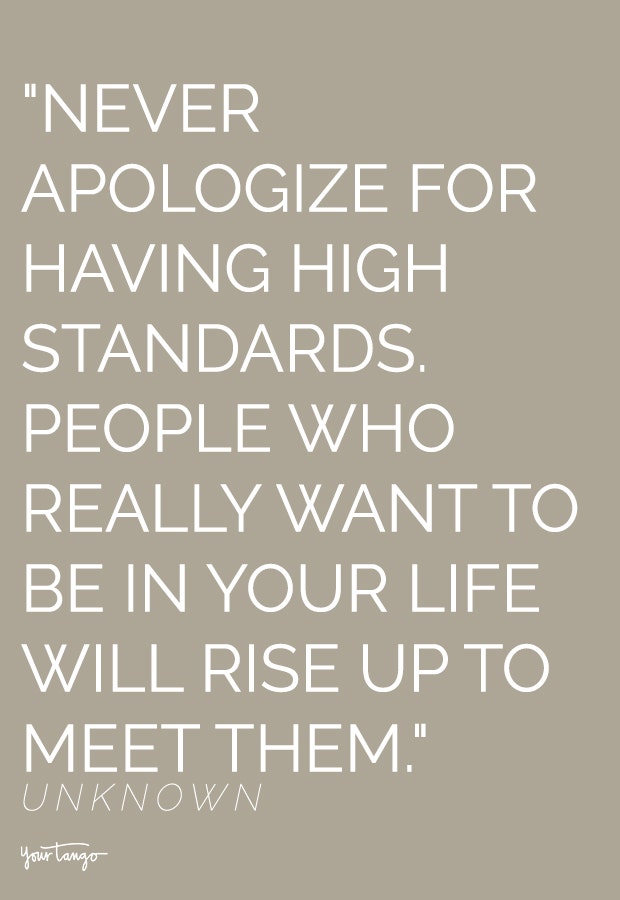 "Never apologize for having high standards. People who really want to be in your life will rise up to meet them." — Unknown