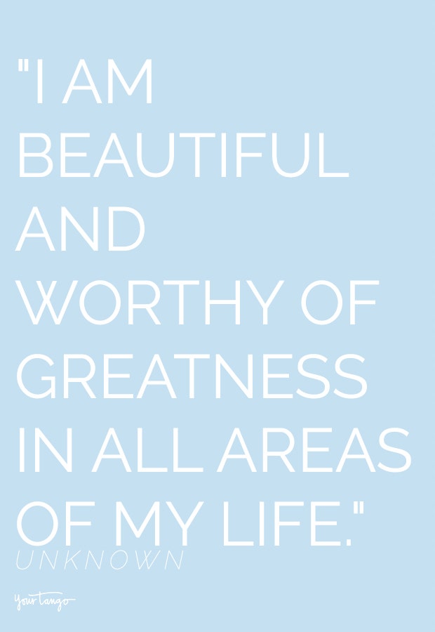 "I am beautiful and worthy of greatness in all areas of my life." — Unknown