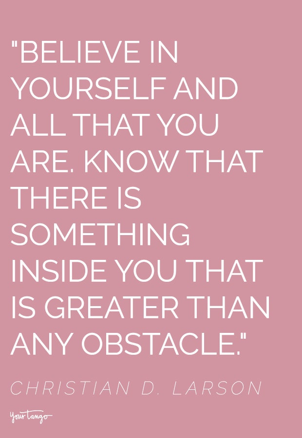 "Believe in yourself and all that you are. Know that there is something inside you that is greater than any obstacle." — Christian D. Larson