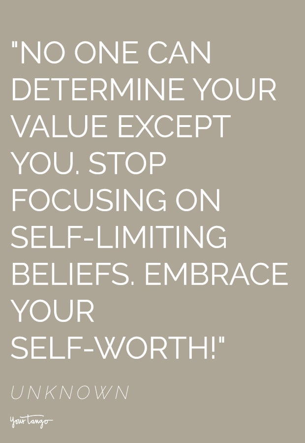 "No one can determine your value except you. Stop focusing on self-limiting beliefs. Embrace your self-worth!" — Unknown