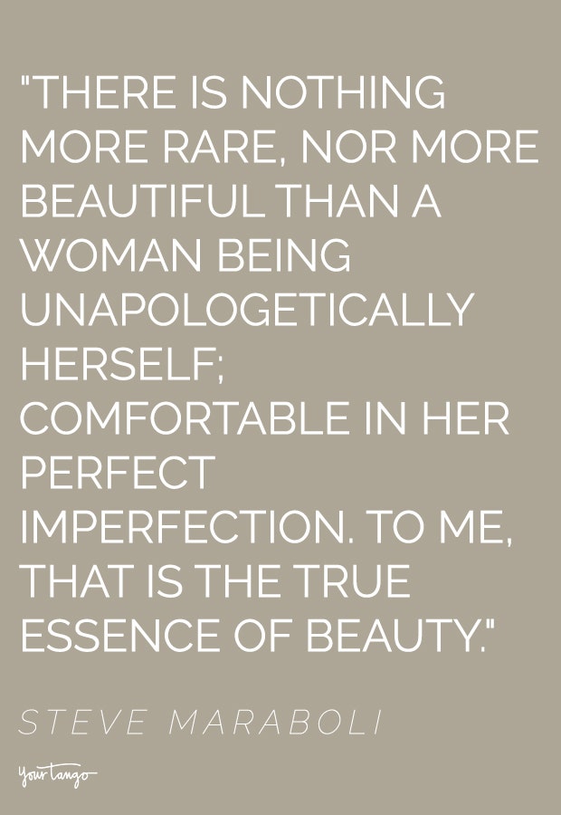 "There is nothing more rare, nor more beautiful than a woman being unapologetically herself; comfortable in her perfect imperfection. To me, that is the true essence of beauty." — Steve Maraboli