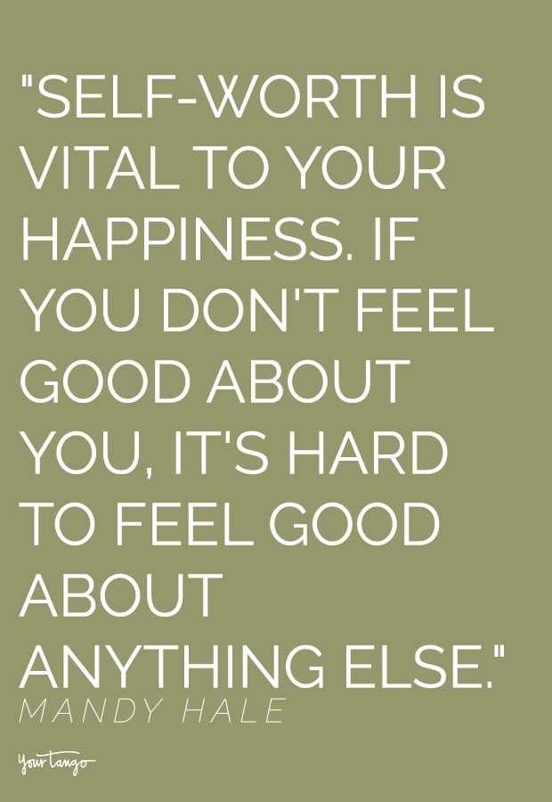 "Self-worth is vital to your happiness. If you don't feel good about you, it's hard to feel good about anything else." — Mandy Hale