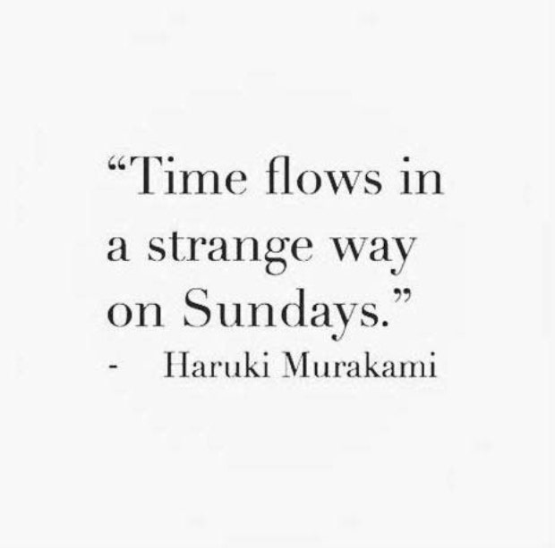 "Time flows in a strange way on Sundays."— Haruki Murakami