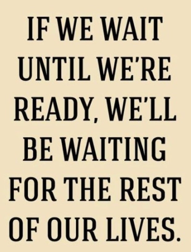 "If we wait until we're ready, we'll be waiting for the rest of our lives."— Unknown