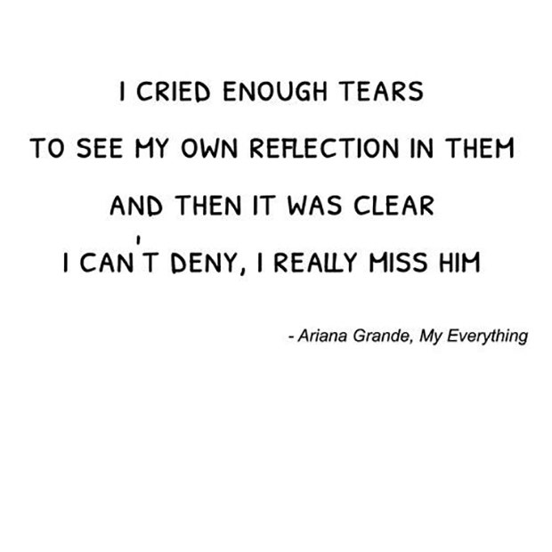"I cried enough tears to see my own reflection in them. And then it was clear I can't deny I really miss him." — My Everything