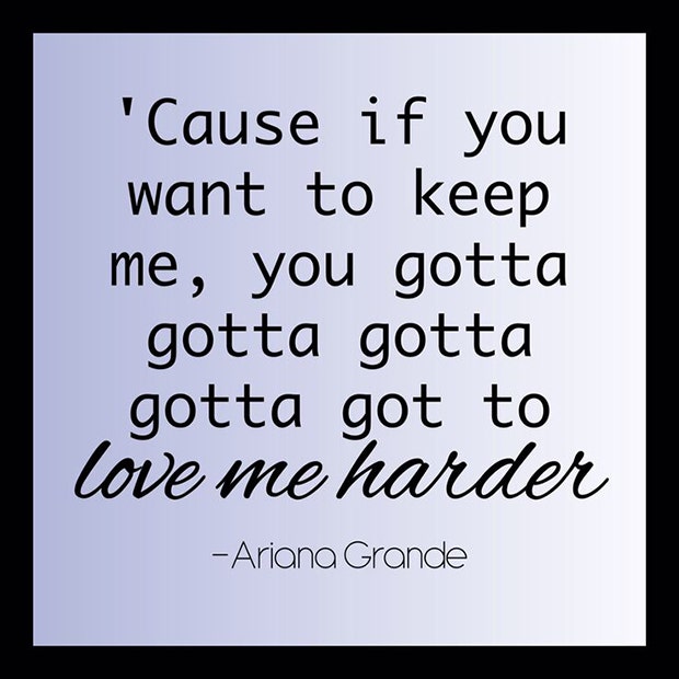 "'Cause if you want to keep me, you gotta gotta gotta gotta got to love me harder." — Love Me Harder