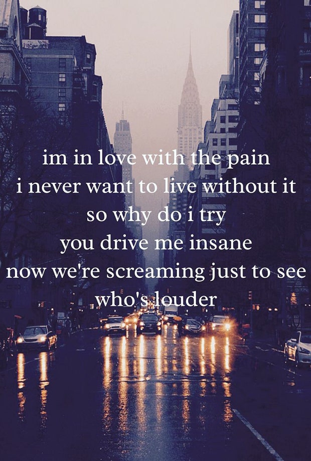 "I'm in love with the pain, I never want to live without it so why do I try. You drive me insane. Now we're screaming just to see who's louder." — Why Try