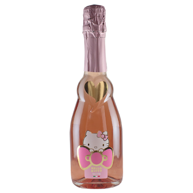 Hello Kitty Rose sparkling wine is officially licensed by Sanrio, designed by an Italian fashion house, and made by a boutique Italian winery. The wine is a light pink color, bubbles are fine and persistent, and it has a sweet floral scent that is lightly spiced and harmonious.