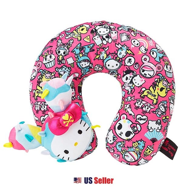 Capture the kawaii nature of tokidoki for Hello Kitty in this brand new collection. A bright pattern highlights the fun in true tokidoki style while Hello Kitty can be found all over in lots of different poses and outfits. This comfy neck pillow is simply adorable and the perfect travel companion!