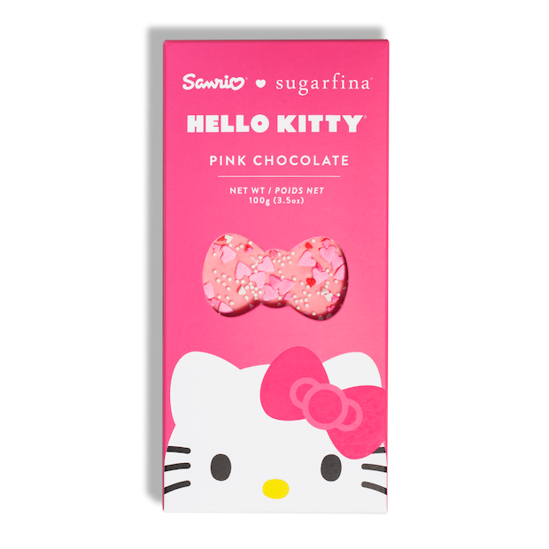 The finest pink chocolate from Paris is topped with adorable heart-shaped sprinkles in Hello Kitty's signature colors. This is such a fun gift idea, but we won't lie: We really want it for ourselves, too.