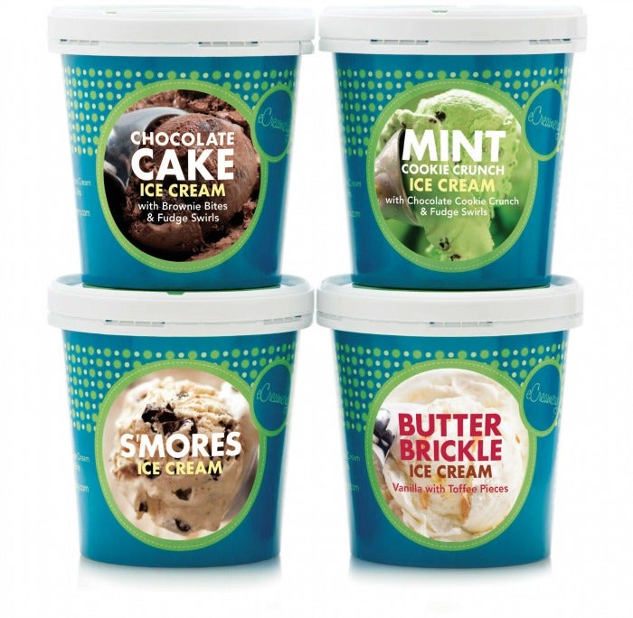 New creations from eCreamery New Dairy Free treats from eCreamery peanutbutter with crushed nutter butter cookie bites, finished with peanut butterswirlsNew Double Cookies and Cream dairy free dessert