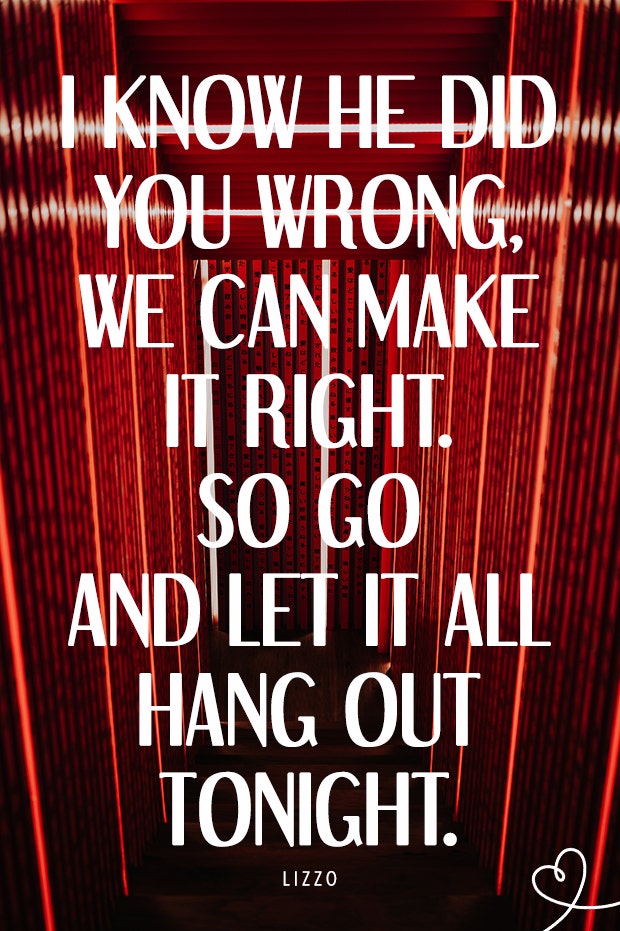"I know he did you wrong, we can make it right. So go and let it all hang out tonight."