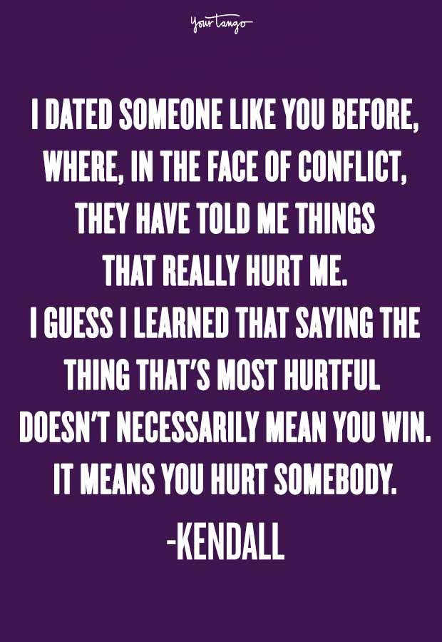 "I dated someone like you before, where, in the face of conflict, they have told me things that really hurt me. I guess I learned that saying the thing that's most hurtful doesn't necessarily mean you win. It means you hurt somebody." — Kendall