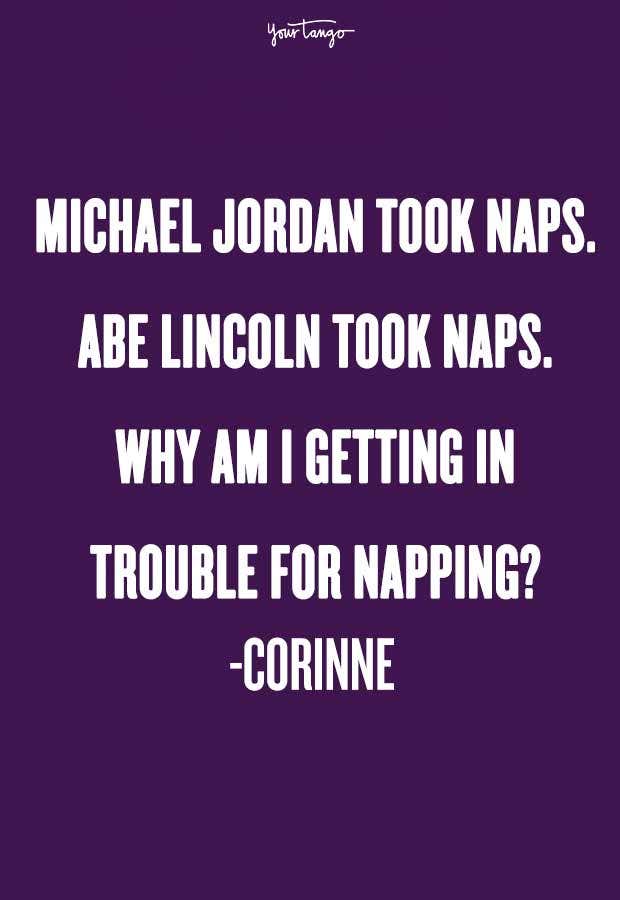 "Michael Jordan took naps. Abe Lincoln took naps. Why am I getting in trouble for napping?" — Corinne