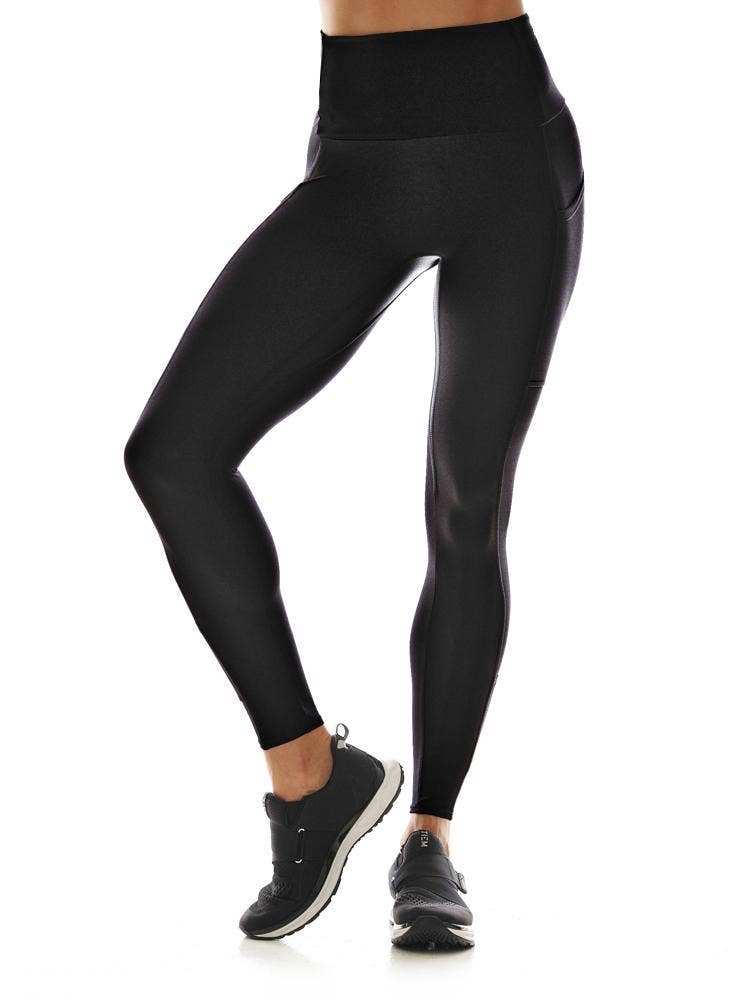 This 100 percent moisture wicking fabric helps avoid sweat along with power mesh inserts to show off contoured calves and a wide waistband that contours and stays put. Compression piping sculpts and elongates the leg, and has hidden zip pockets for keys or cards.