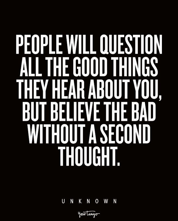 “People will question all the good things they hear about you, but believe the bad without a second thought.”— Unknown