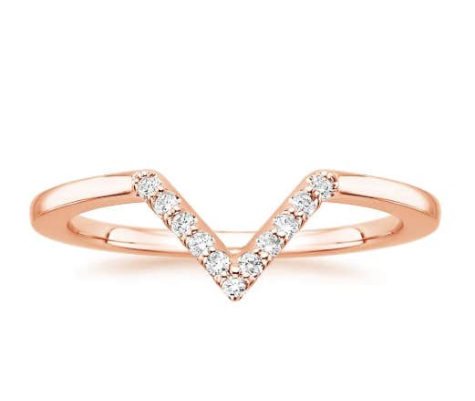 Sparkling diamonds adorn this sleek chevron-shaped ring, which is perfectly styled to complement an engagement ring, stack with other rings, or wear by itself.