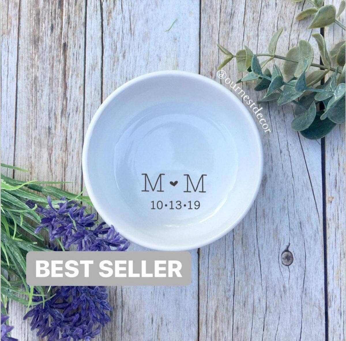 This custom ring dish keeps the ring safe while they cook, shower, sleep or work out! It's a perfect little gift for the bride to be.