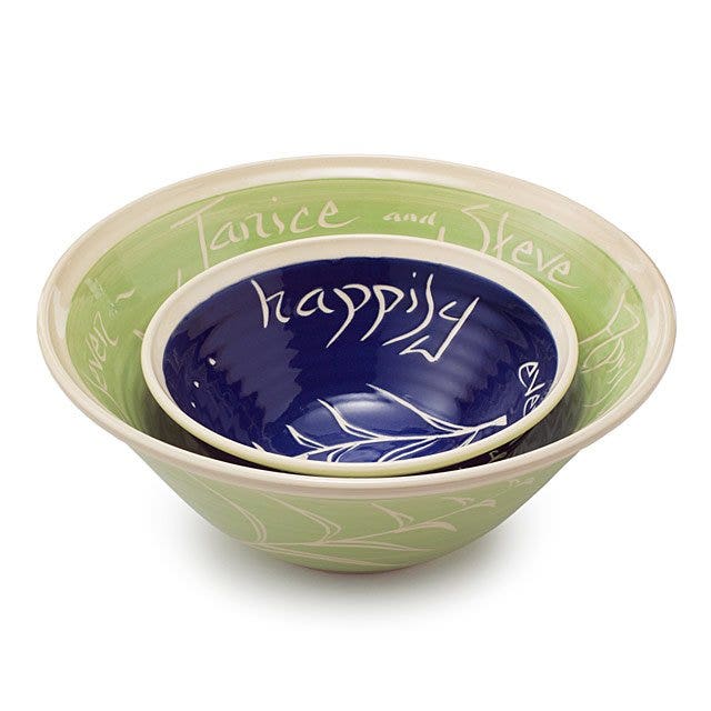 Honor the happy newlyweds with a keepsake bowl set in your choice of pattern and in two coordinating colors.