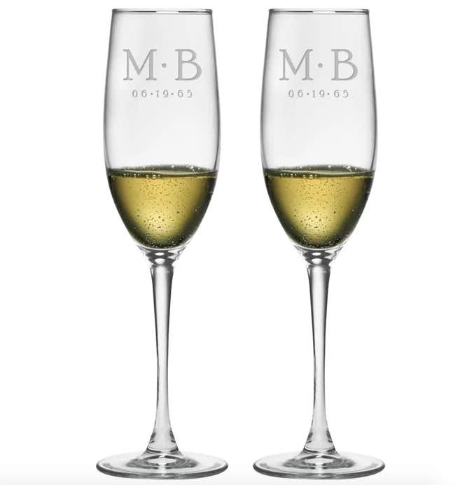 Commemorate the most special day of all with this Dot Monogram and Date 8 oz Glass Flute. Each classic flute in this set of two is sand etched with the first name initials and date, creating a unique and personal keep sake for the happy couple.