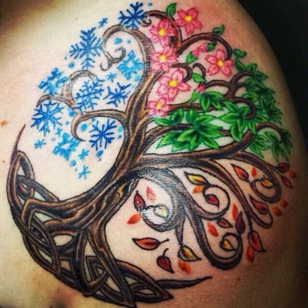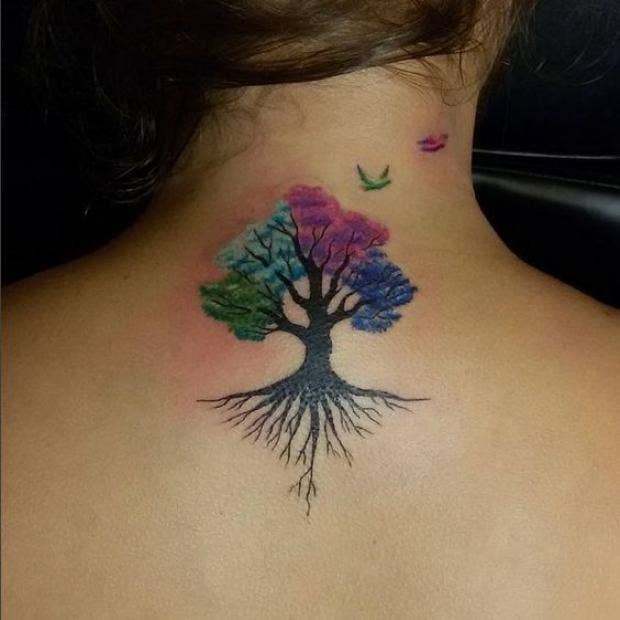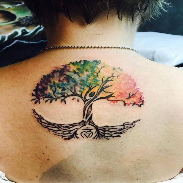 The Tree of Life used as a tattoo has many different meanings. It can represent the foundations of the world, immortality, and renewal.