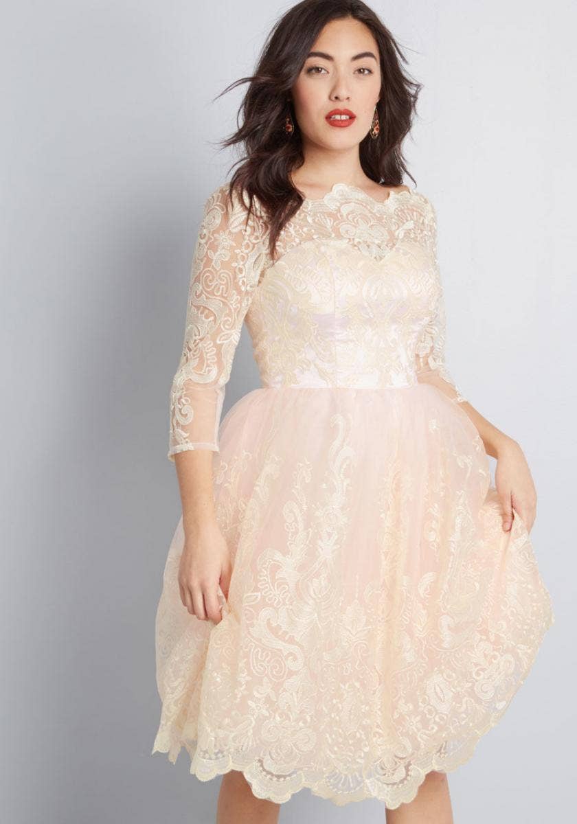 Chi Chi London's Gilded Grace lace dress is an adorable semi-formal option for a vintage loving bride.