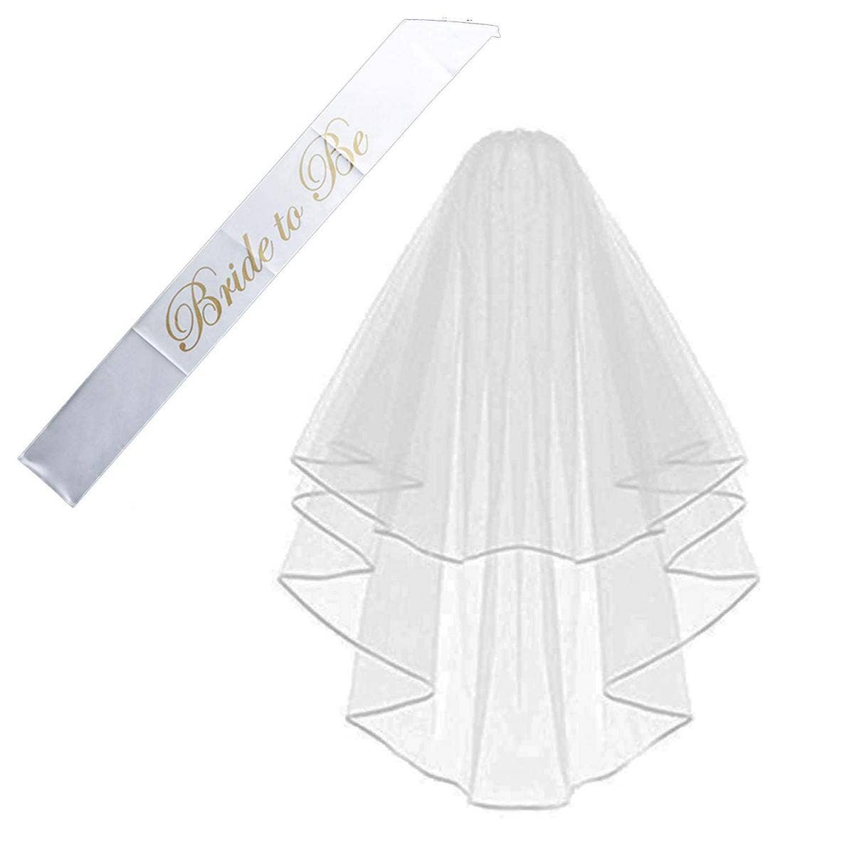 With this value pack, you will give the bride a classy style that she will be proud of for many decades. The set includes 1 bridal weil with Comb, 1 gold stamp bride to be letters, and 1 satin sash.