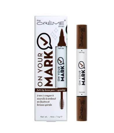The On Your Mark Felt-Tip Brow Pen + Spooley is a smooth flowing and easy to apply formula that fills in and defines brows. The fine tip pen allows you to outline and create a clean shape using fine strokes to mimic brow hairs and achieve clean, perfectly groomed brows.
