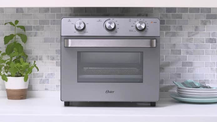 This versatile Oster countertop oven is an all-in-one appliance that lets you toast, convection bake, broil, warm, and air fry. Air fryer features a built-in fan for perfectly crispy results. It uses just a tablespoon or less of oil, which is 99.5 percent less oil than a 3.7L deep fryer.
