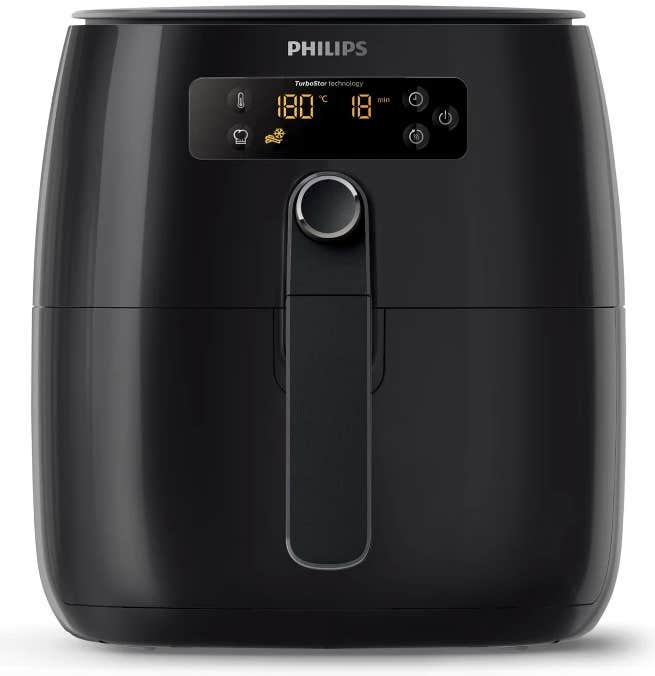 Unique TurboStar Technology for healthier cooking and frying, the air fryer cooks fried food 50 percent more evenly. It has 5 presets for the most popular dishes including a keep warm function and quick control dial with digital display.