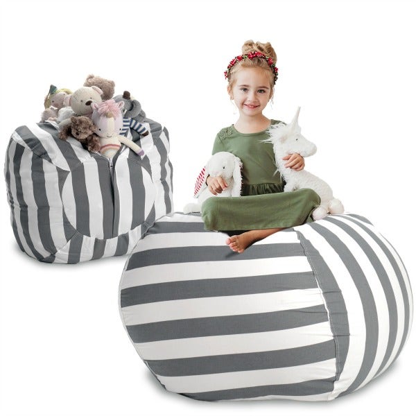 Just fill and zip to create a plush, stuffed animal bean bag chair in a matter of minutes. This holder will transform the stuffed animal clutter into functional storage that works just like a bean bag chair.