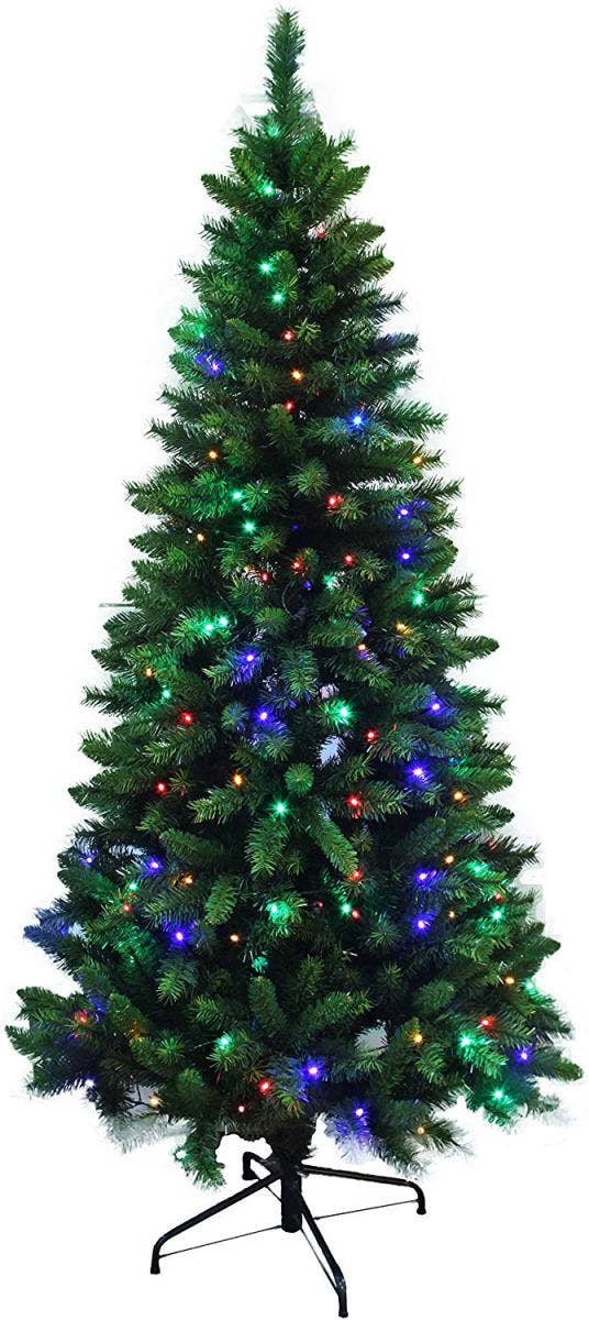 This faux Christmas tree comes with 100 clear lights. The best part is the lights will stay on if one burns out, ensuring this tree will light your holiday spirit for years to come.