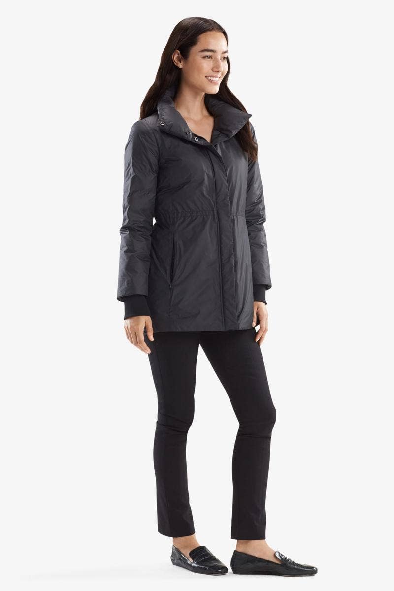 The perfect puffer that doesn’t make you look puffy. The Padma is not only bulk-free, thanks to its flattering and feminine shape, but it will keep you warm through those cold winter months. The adjustable drawstring defines the waist, and the high collar offers protection against the elements. The Padma is water resistant, making it the perfect rain jacket.