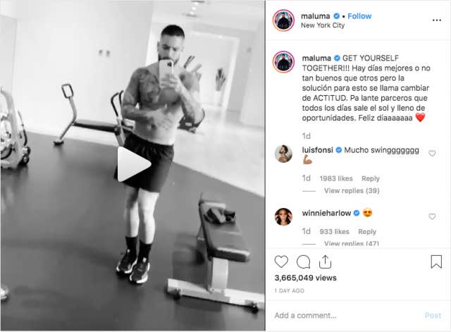 On Wednesday, Maluma posted a video of himself dancing at the gym, with no shirt on. Harlow commented with the heart eyes emoji.