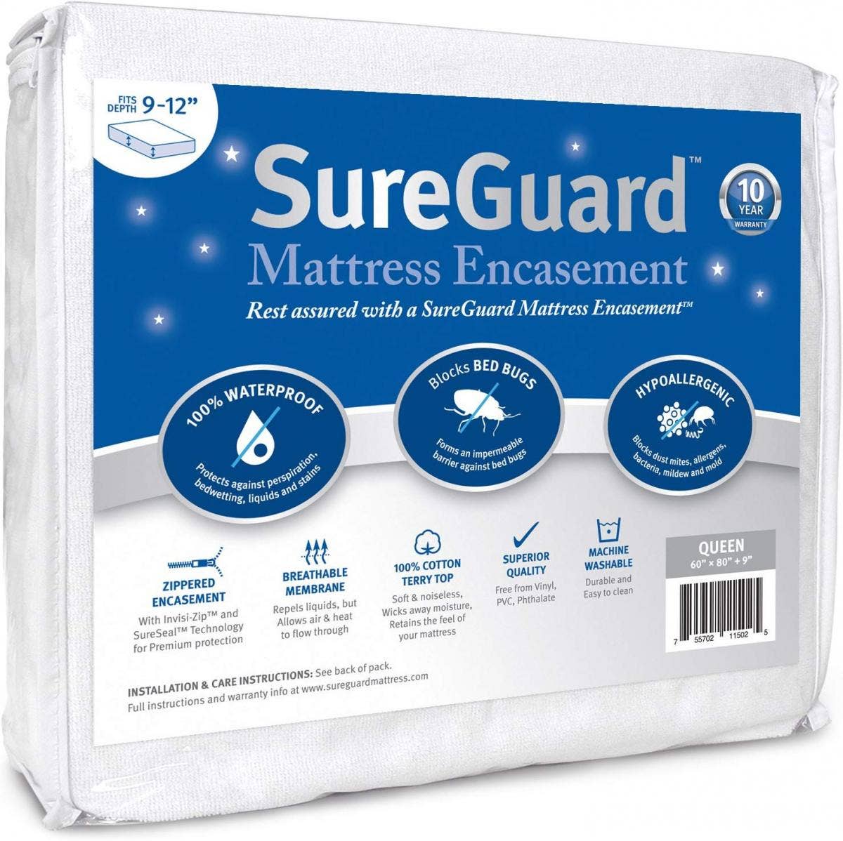 7. SureGuard Hypoallergenic Mattress Encasement